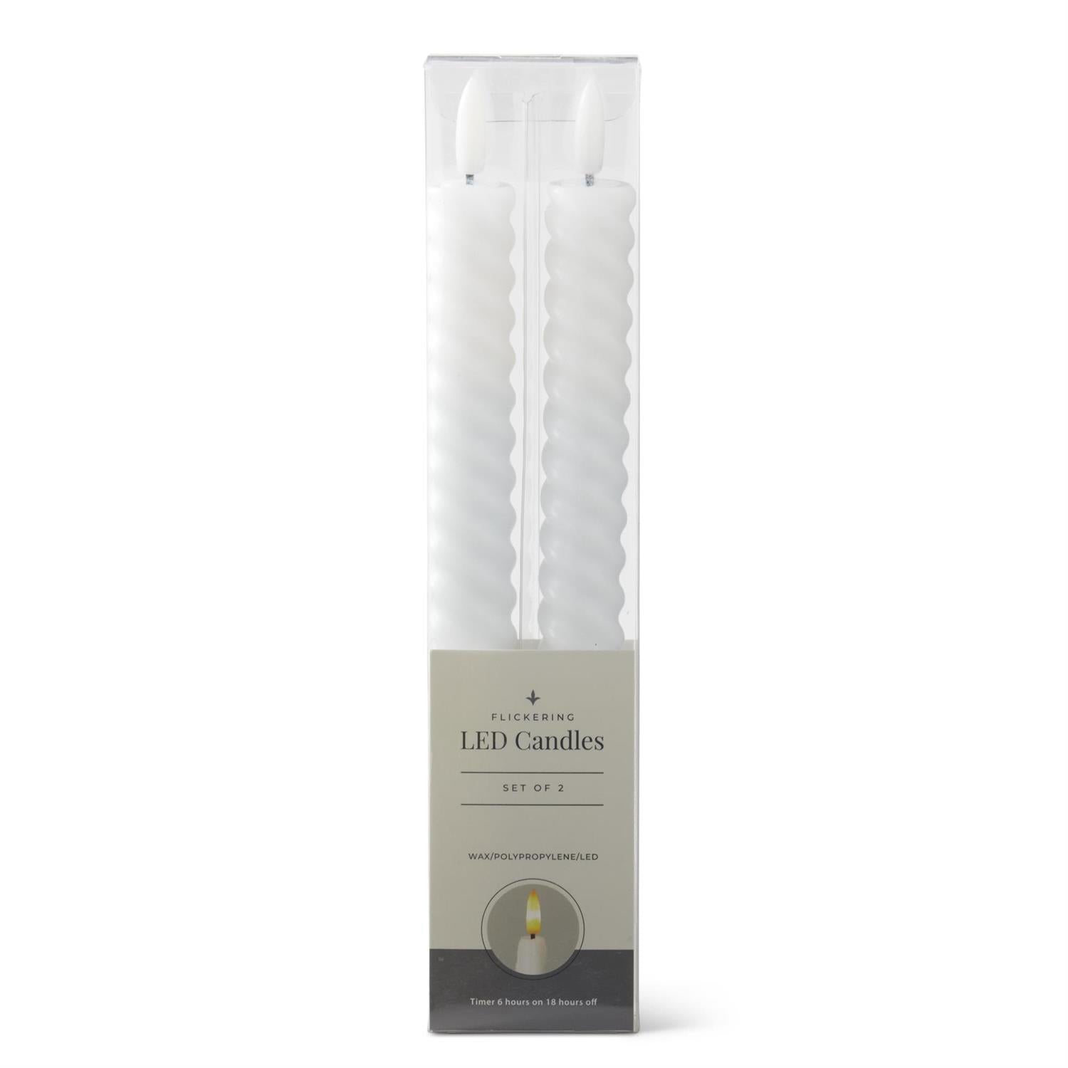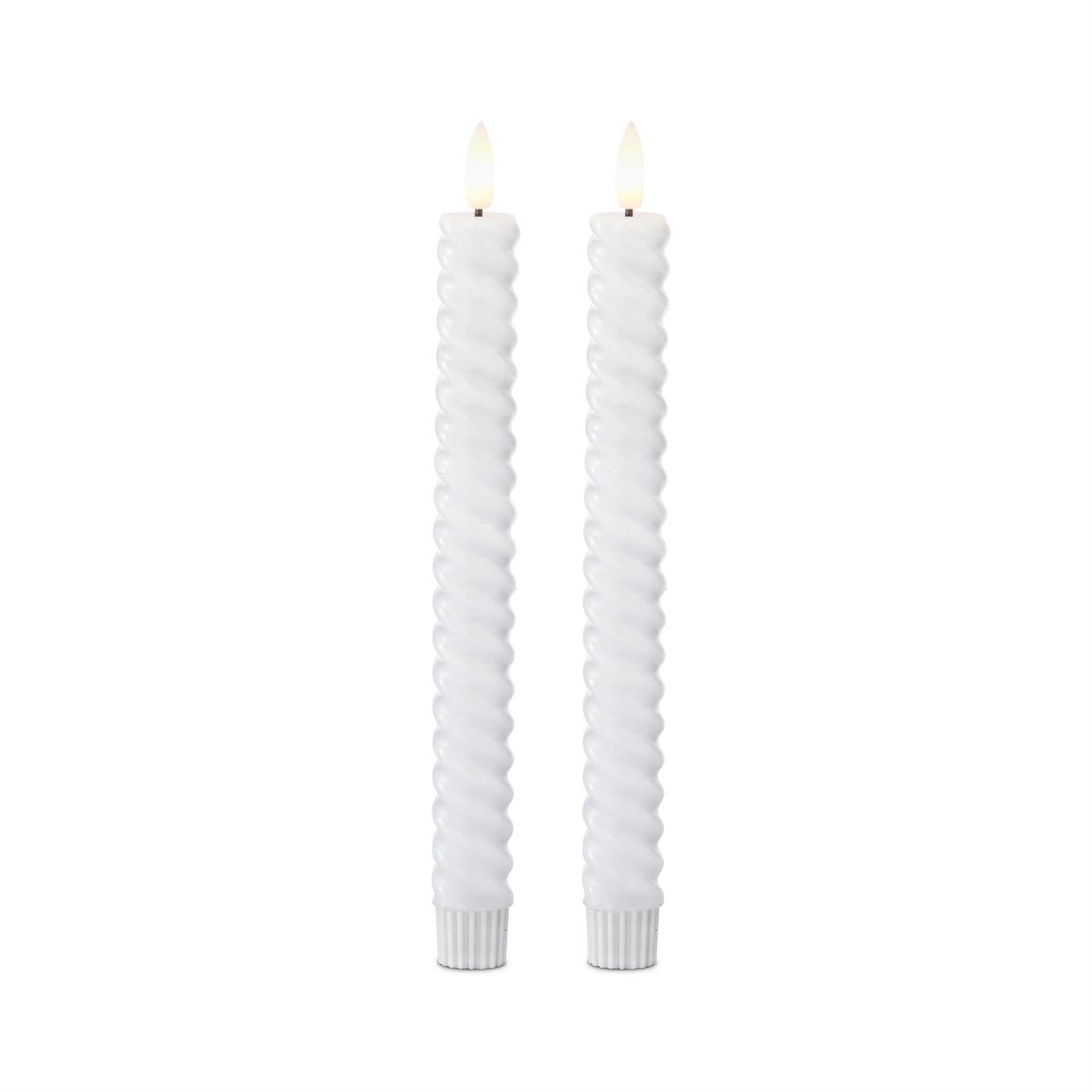 9.75 Inch White Spiral LED Taper Candles w/Timer