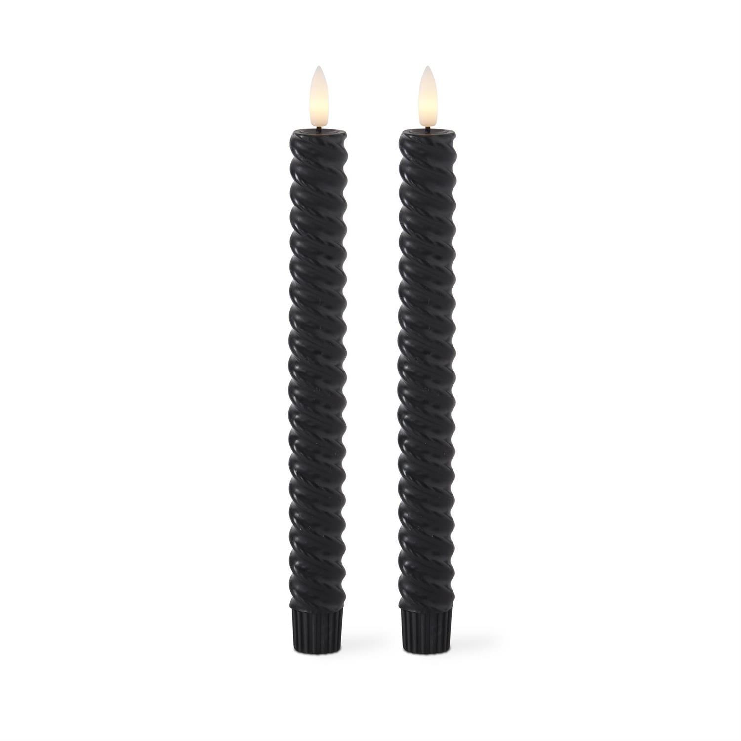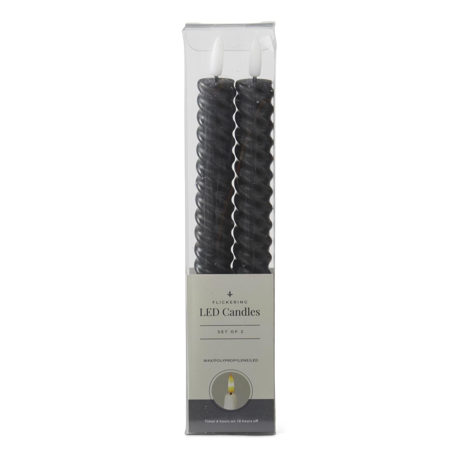 Set of 2 9.75 Inch Black Spiral LED Taper Candles w/Timer