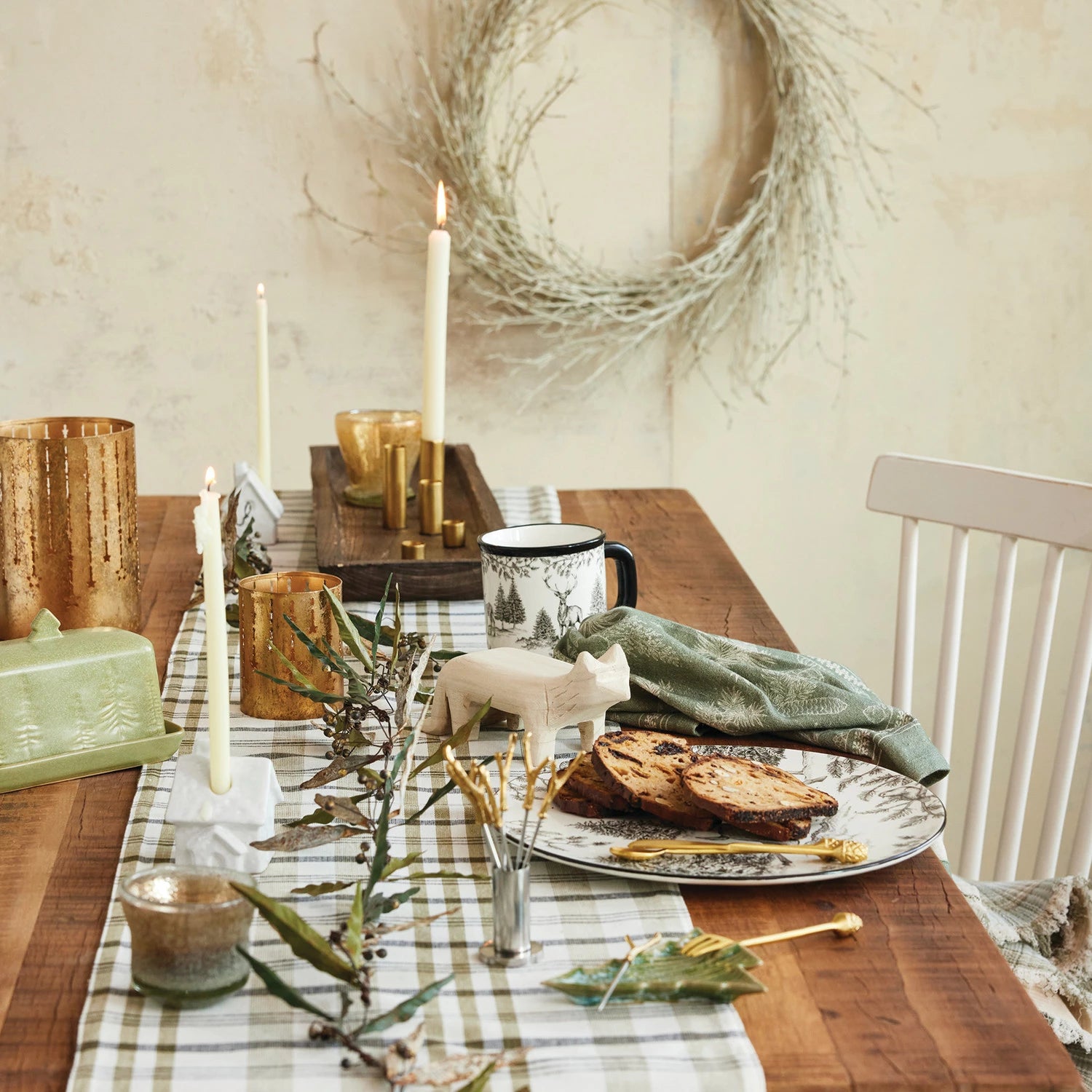 Ceramic Platter with Woodland Deer Scene & Colored Edge